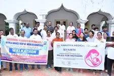 The event was flagged off by Dr. S. Sandhya, Principal of Kakatiya Medical College, who emphasized the critical role of early initiation and exclusive breastfeeding in reducing infant mortality. She highlighted the importance of colostrum as the "first vaccine" and encouraged community-wide awareness to support breastfeeding practices.The walkathon witnessed enthusiastic participation from students, faculty, and healthcare professionals.